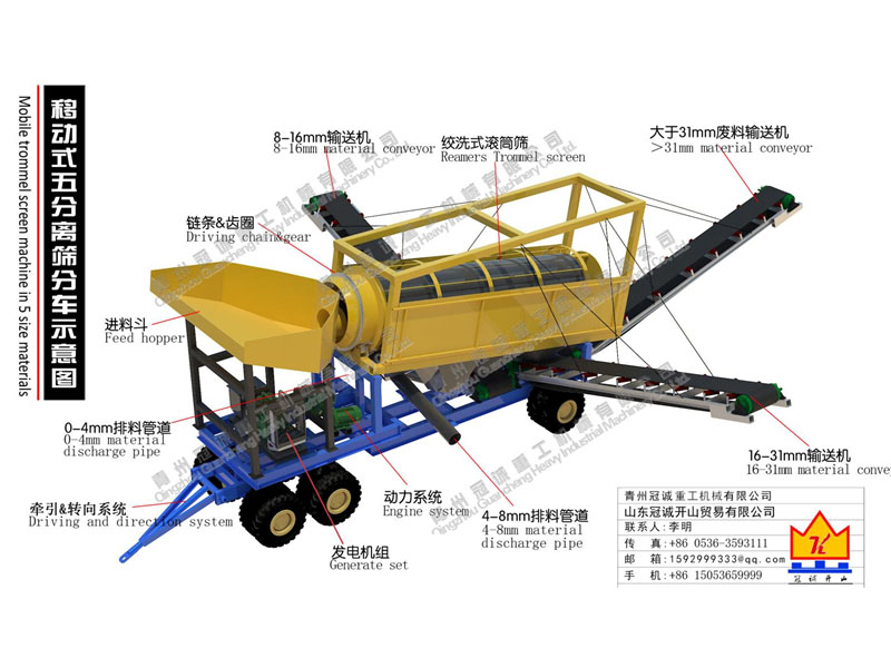 洗石機(jī)中篩分很重要,山東洗石設(shè)備廠家為您推薦一款移動式洗石篩分車,本設(shè)備設(shè)計(jì)結(jié)構(gòu)合理緊湊,發(fā)電機(jī)組集成在底盤上,附帶牽引&轉(zhuǎn)向系統(tǒng),可以使用牽引車輛輕松移動至工作場地;其中篩分系統(tǒng)使用了新型核心技術(shù)的絞洗式滾筒篩